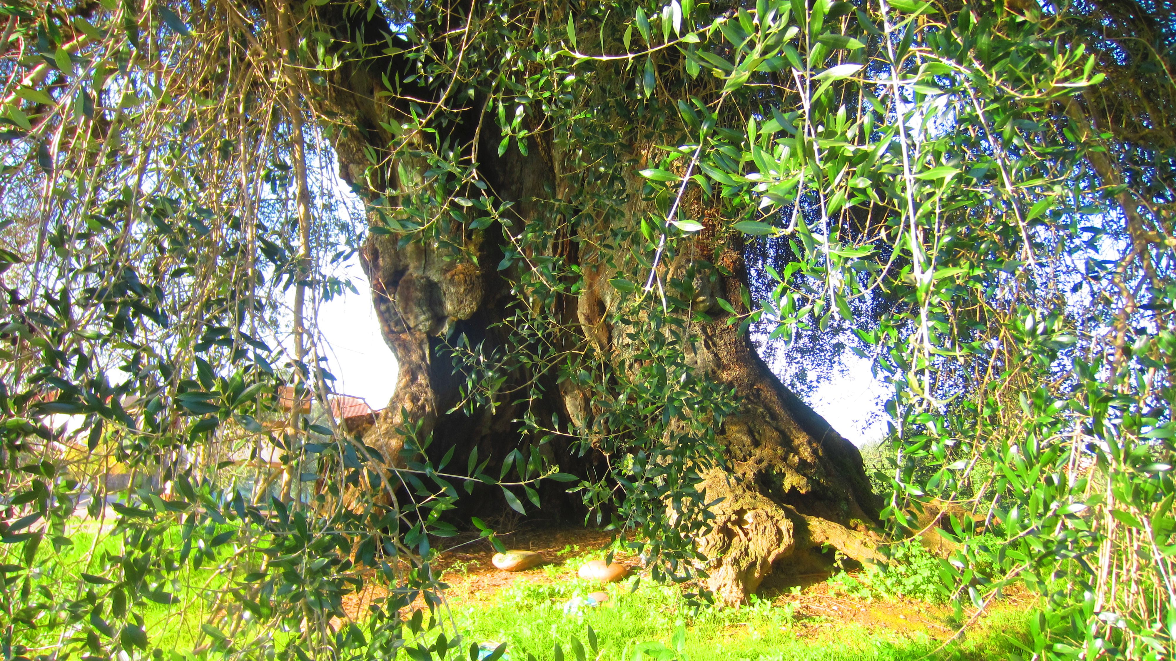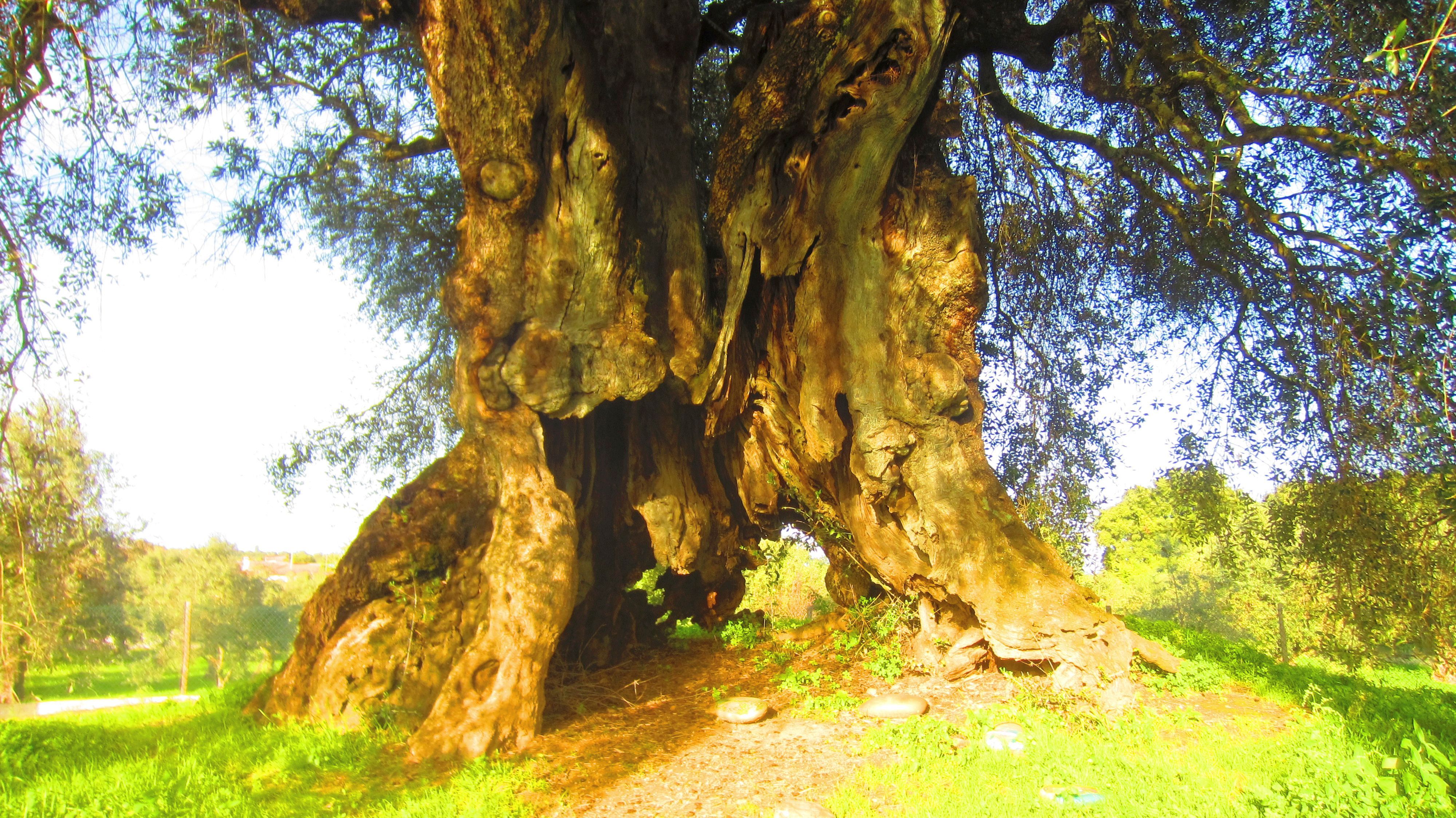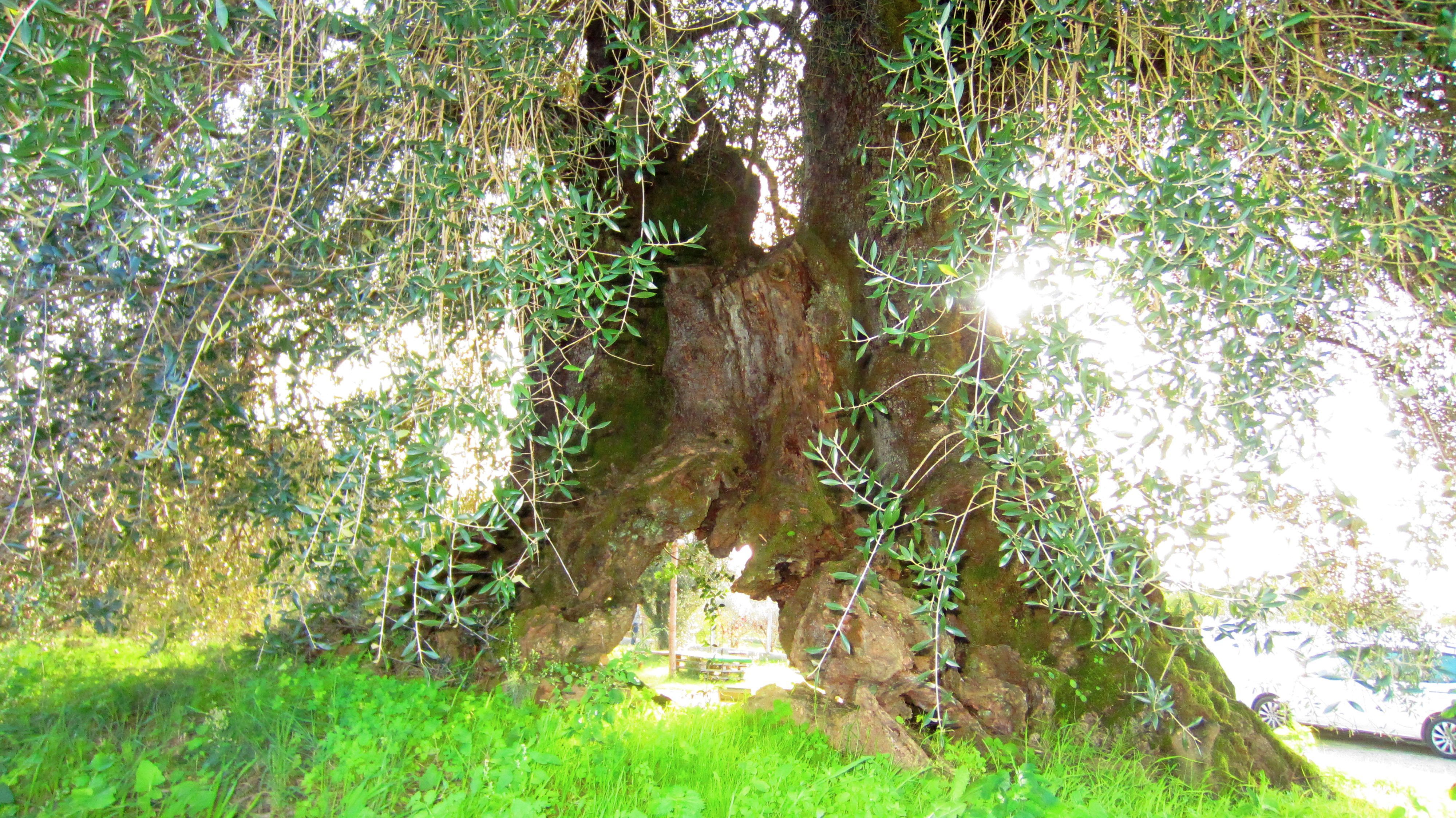 Es soll ja immer was Besonderes sein, was wir aufsuchen. Da gibt es so einen 3.500 Jahre alten Olivenbaum. Die Sonne scheint - also müssen wir da hin :-)