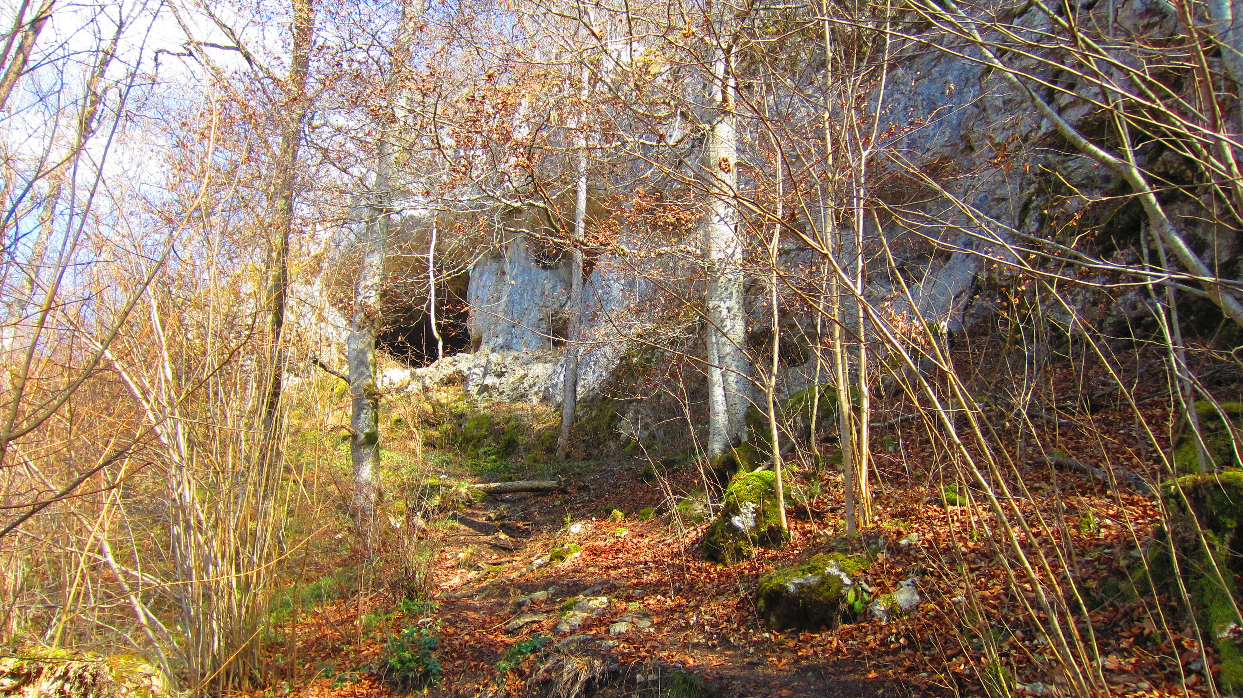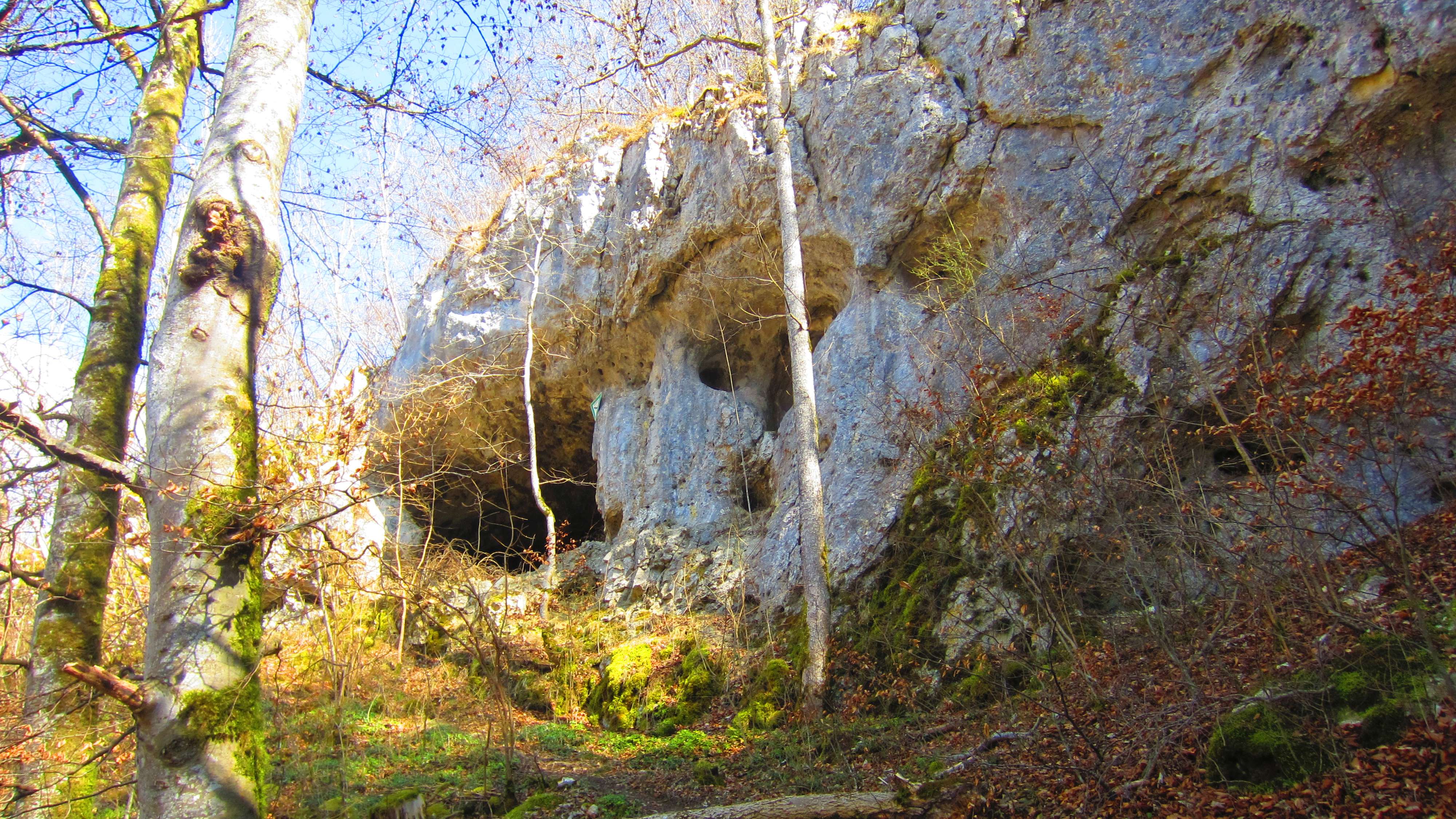Ansteigende Höhle (Backofentyp) im Unteren Massenkalk des Oberjuras. Aus der Höhle werden Funde aus der Jungsteinzeit, Latènezeit und aus dem Mittelalter erwähnt. |