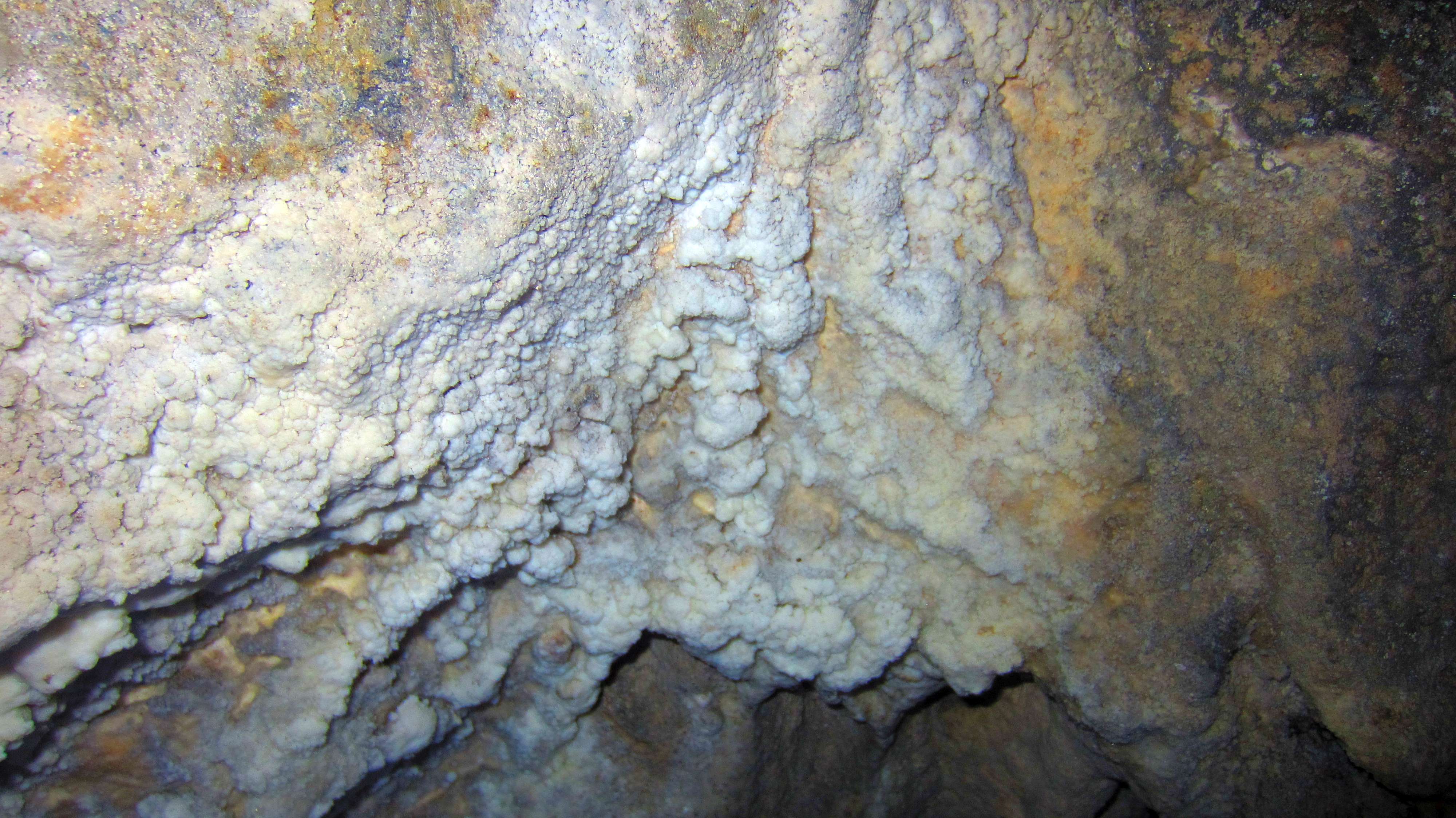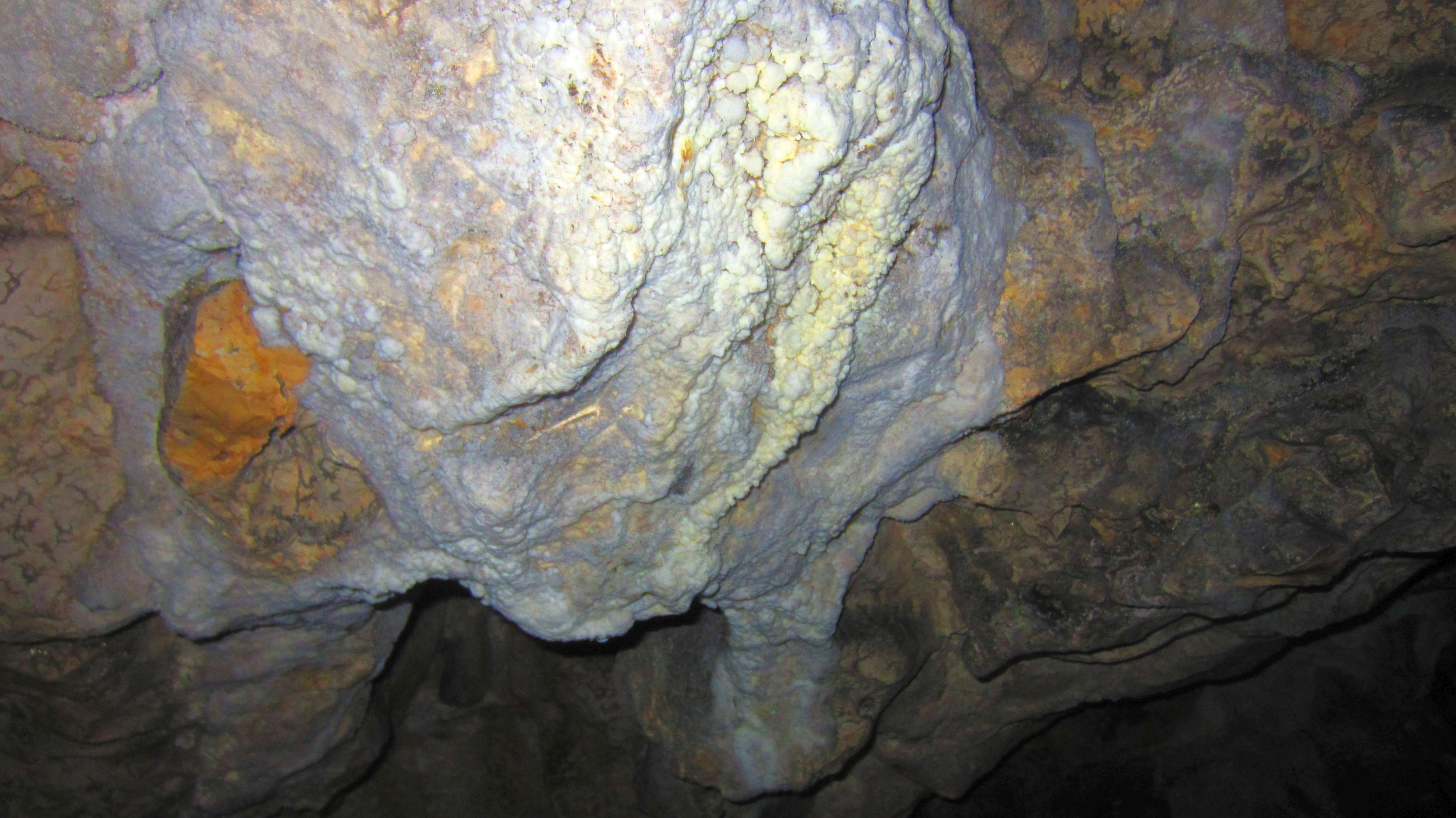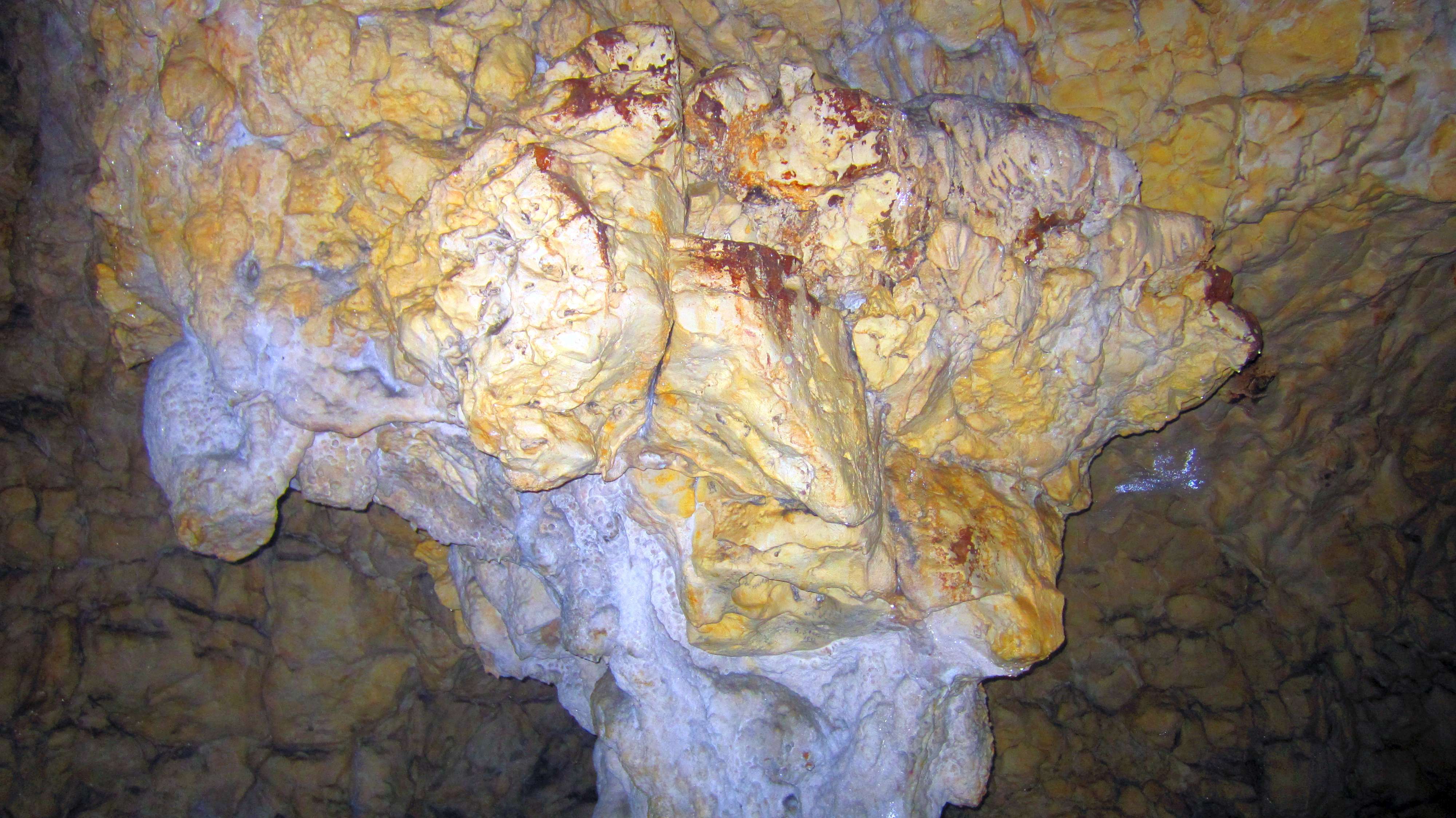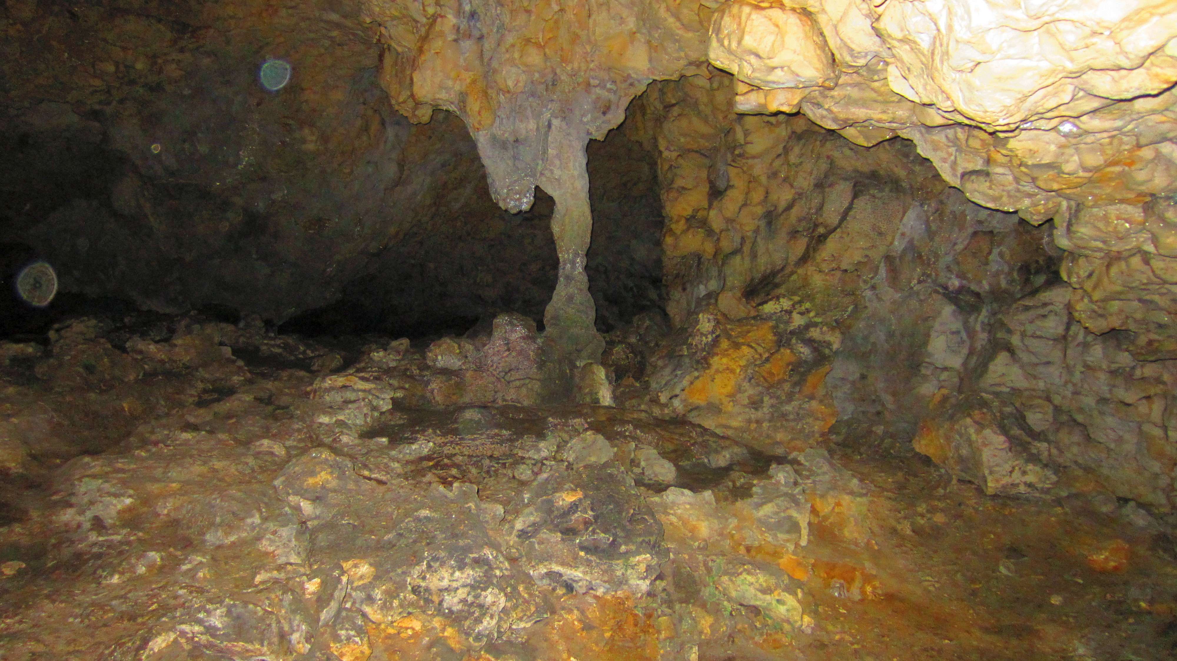 Der Boden steigt nach hinten leicht an. Man kann einen Pfeiler sowie eine Tropfsteinsäule entdecken.