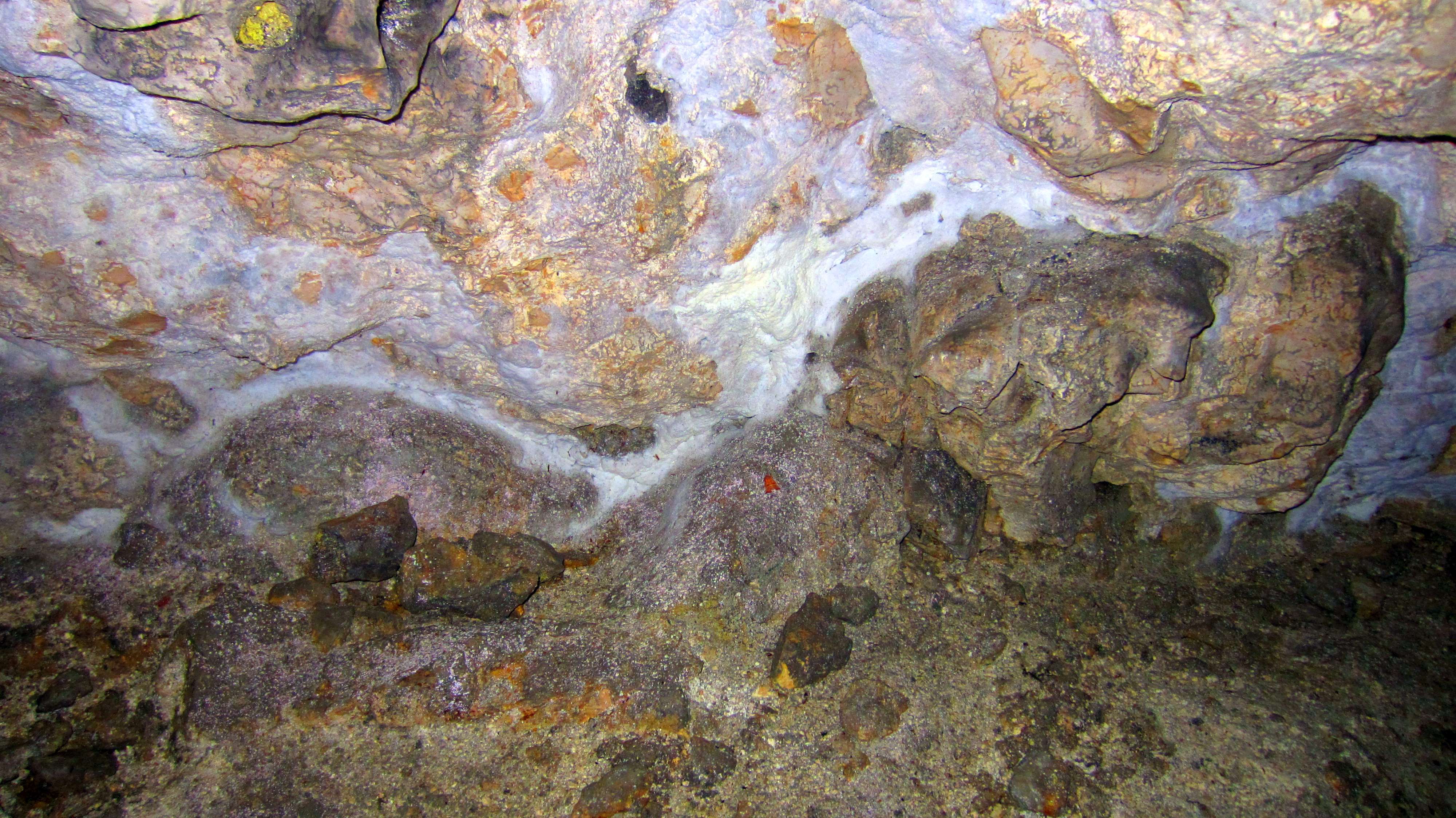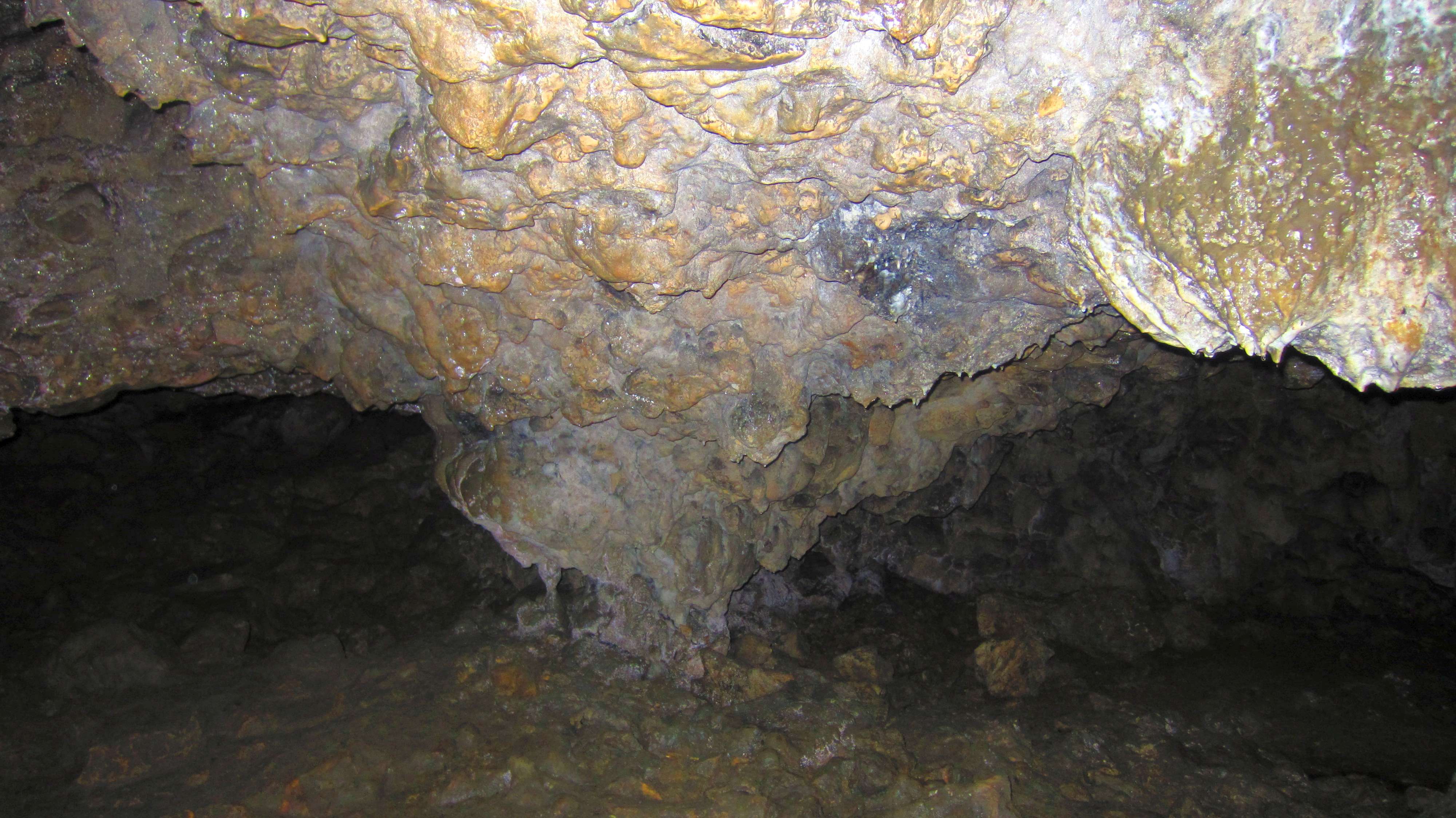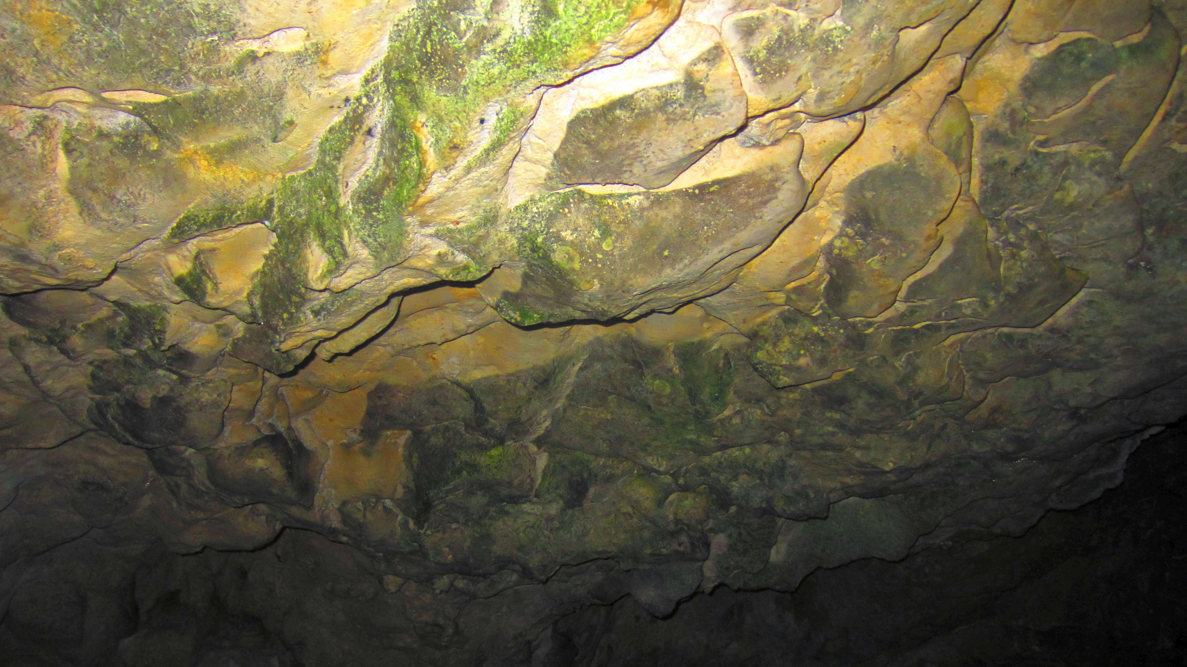 Wenn man den Trampelpfad erstmal am Straßenrand gefunden hat, ist es nicht mehr weit bis zur Höhle. Ein bißchen steil bergauf - und da ist sie schon. |