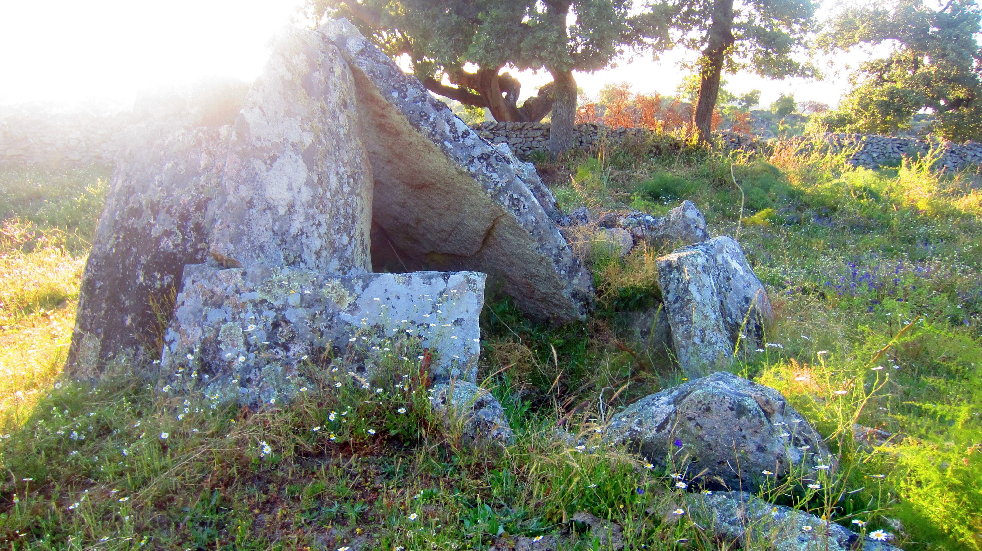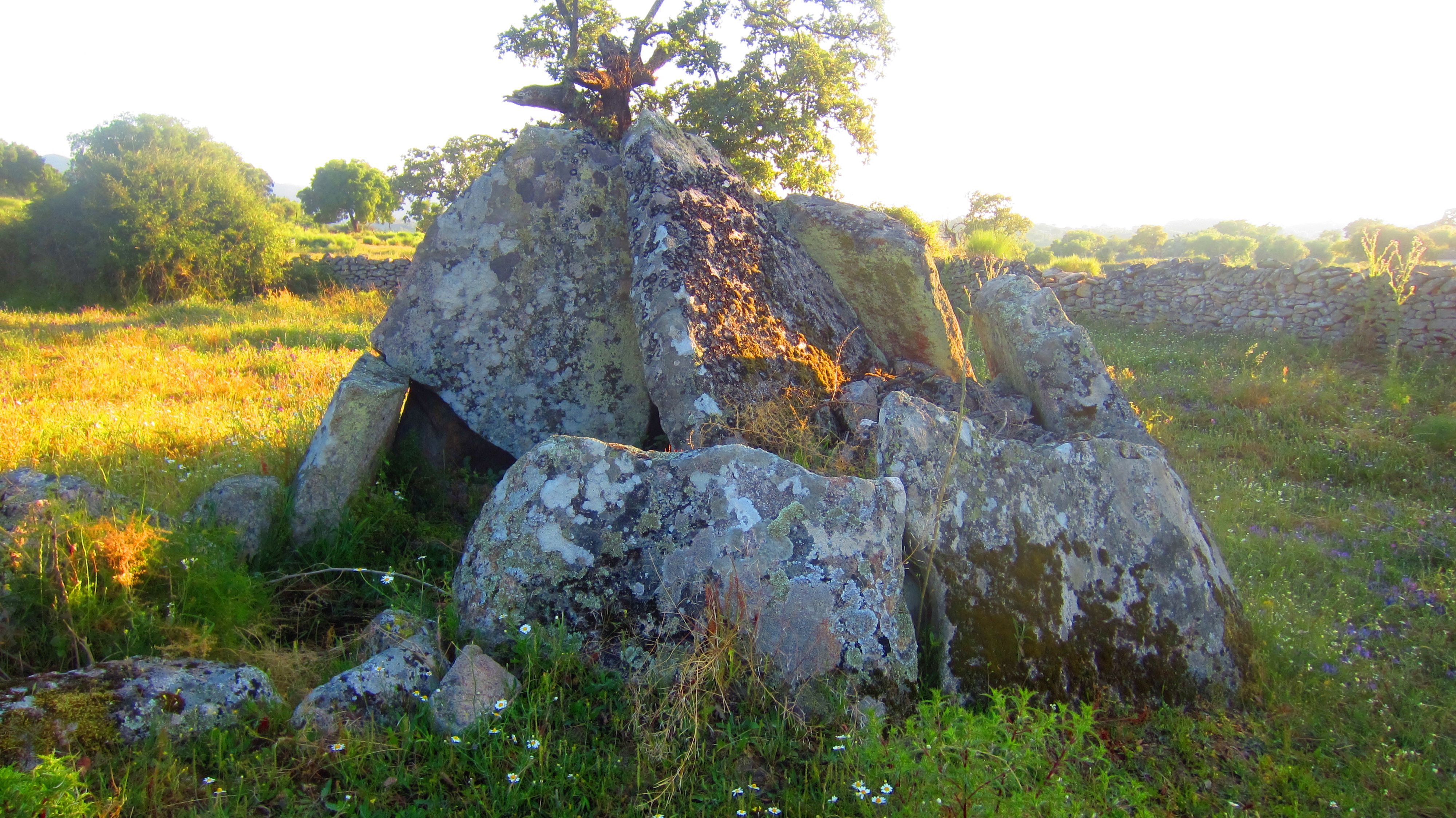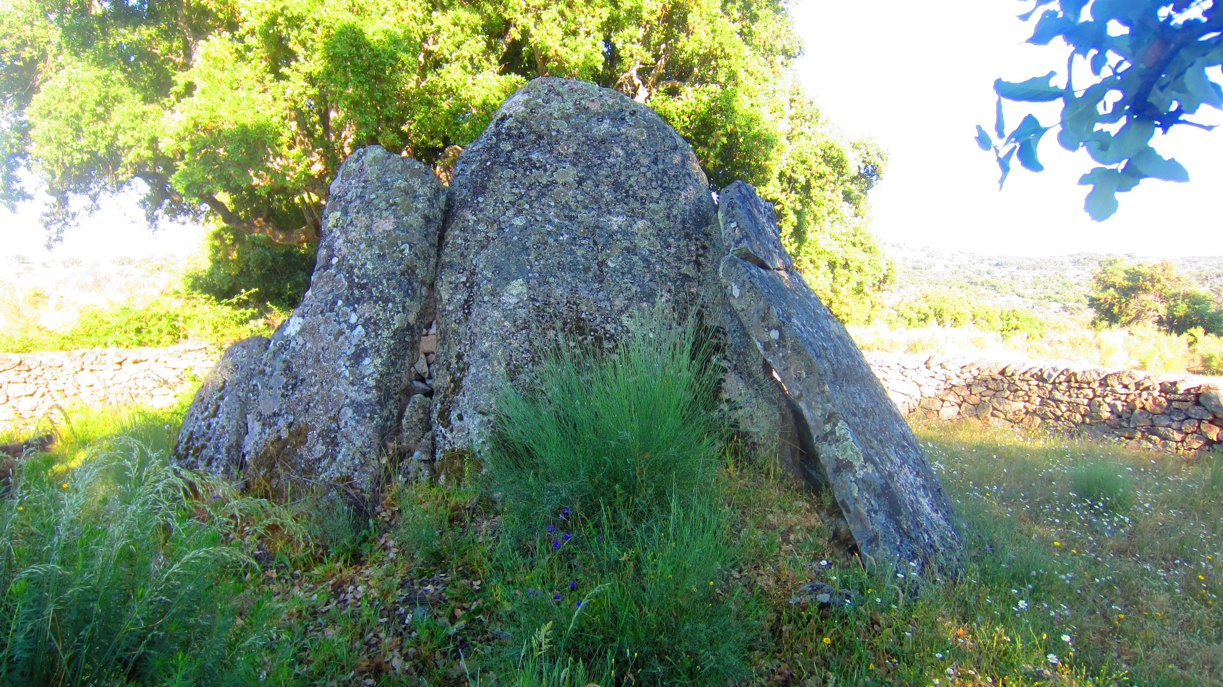 Trittsteine in der Mauer, damit man zum Dolmen kommen kann
