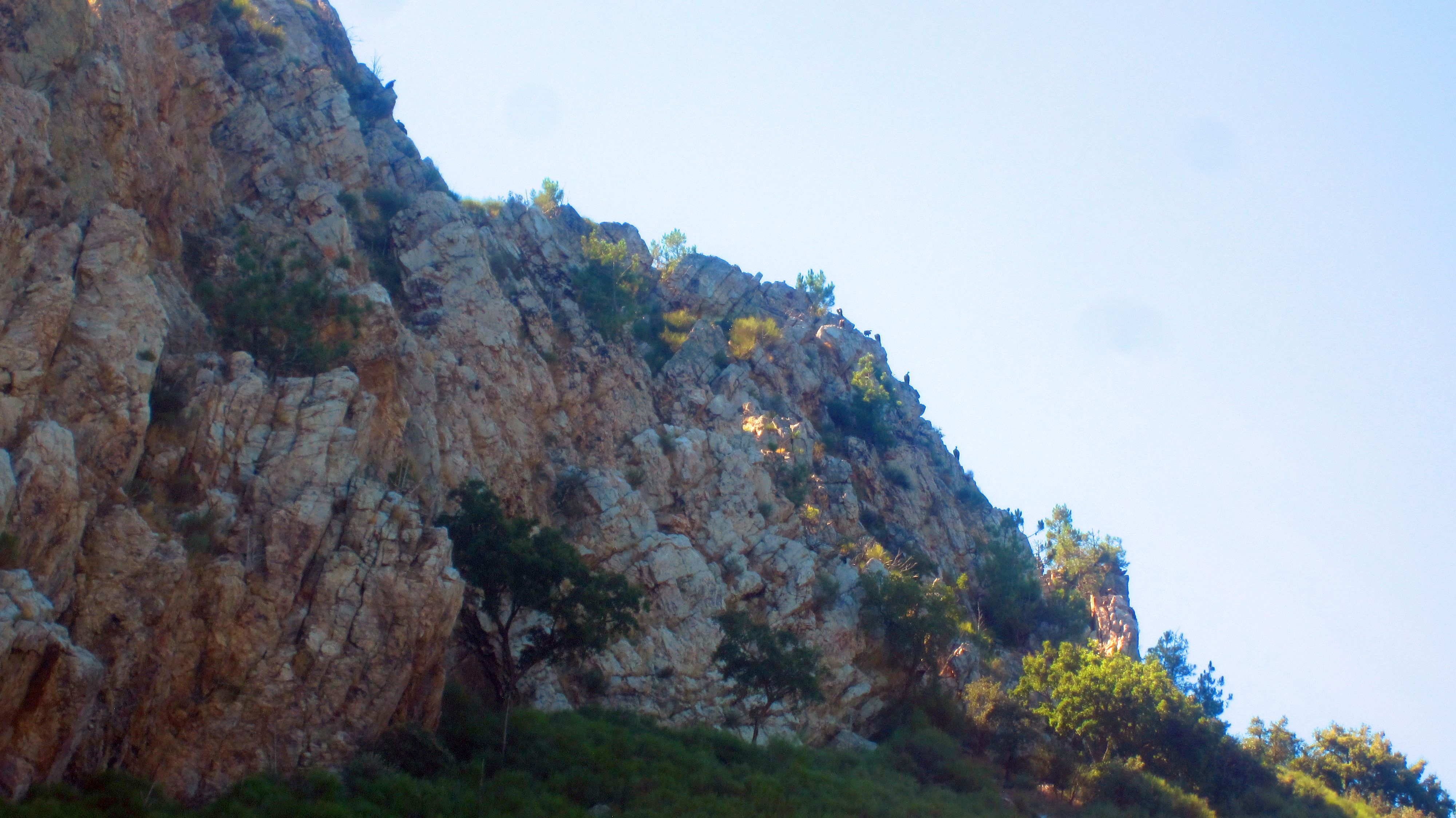 mitbekommen, dass zum Abhang hin ein Bachbett ist... beim
