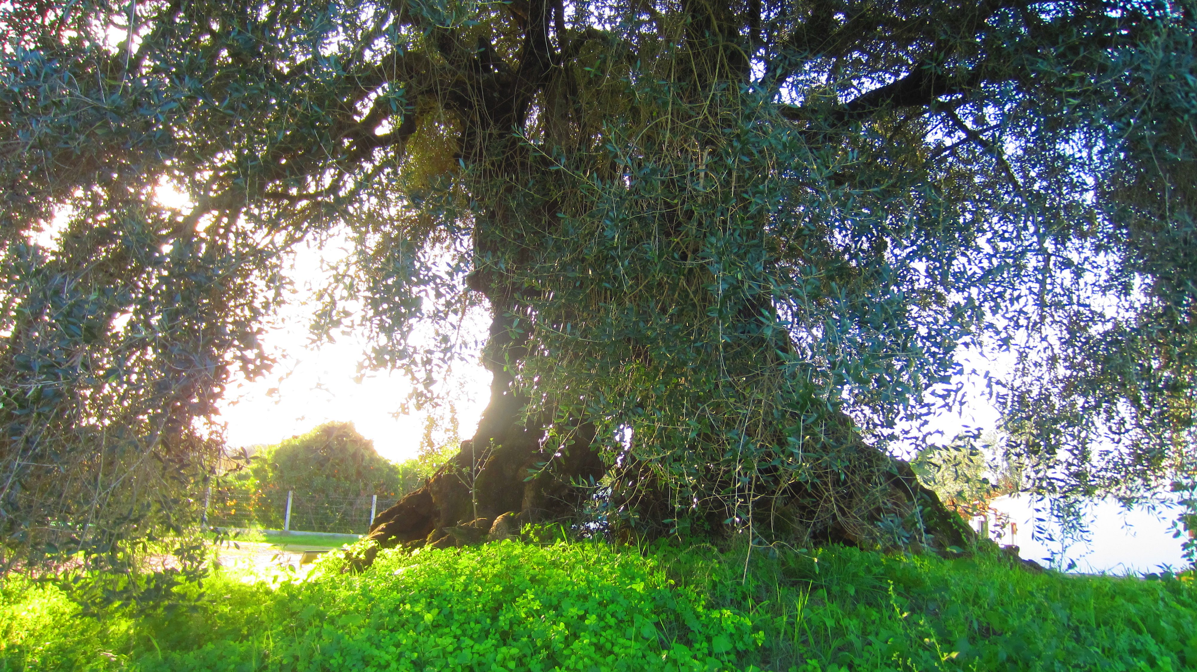 Es soll ja immer was Besonderes sein, was wir aufsuchen. Da gibt es so einen 3.500 Jahre alten Olivenbaum. Die Sonne scheint - also müssen wir da hin :-)