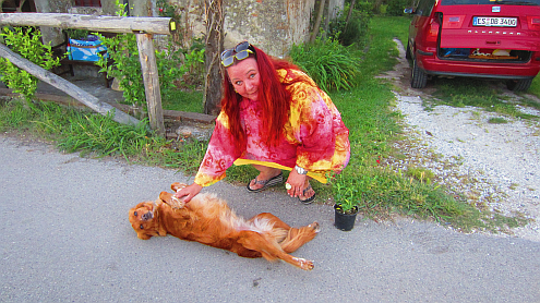 Aber ein paarmal ist Penny aufgetaucht, die sich mit größter Begeisterung von uns kraulen läßt. Sie gehört zum Bed & Breakfast, 100 m weiter. Sie könnte auch unser Urlaubshund werden :-)