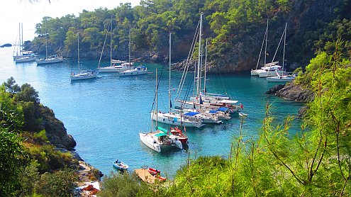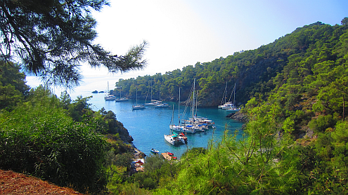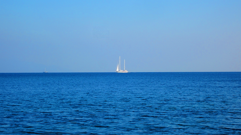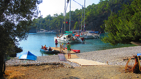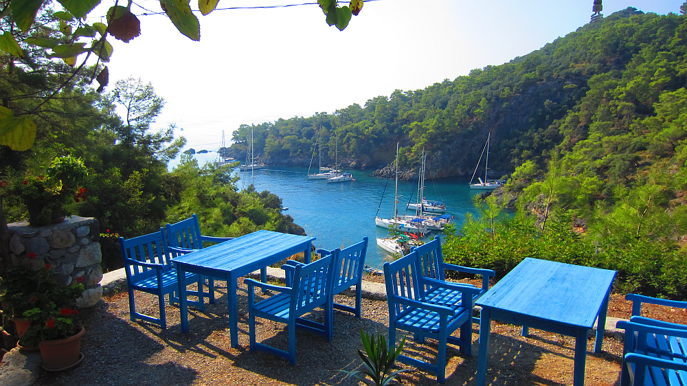 In der Bucht rechts im Bild liegen wir neben dem Katamaran. |