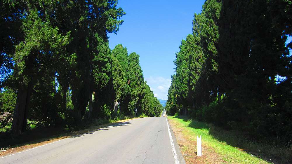 Dann aber weiter nach Bolgheri... über die 5 km Zypressenallee zum Ort.