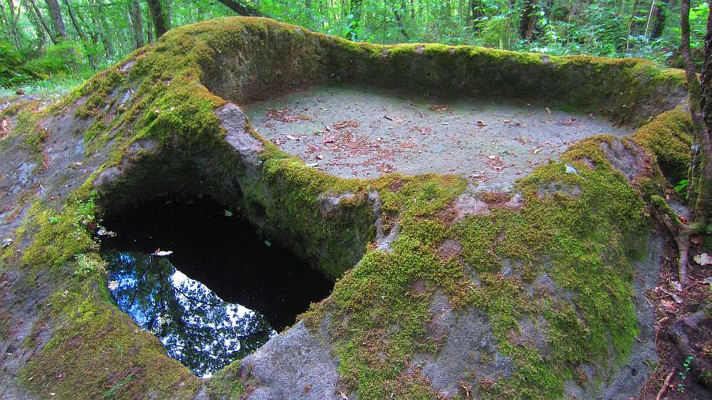 Man grub rechts und links in die Brunnenwände Trittlöcher. Falls irgendeine Reparatur vorgenommen werden musste, konnte jemand problemlos mit einem Bein rechts, das andere links in den Brunnen hinabsteigen (vermutlich aber doch mit einem Seil gesichert...), Leiter oder sowas war damit nicht erforderlich. Wie praktisch.